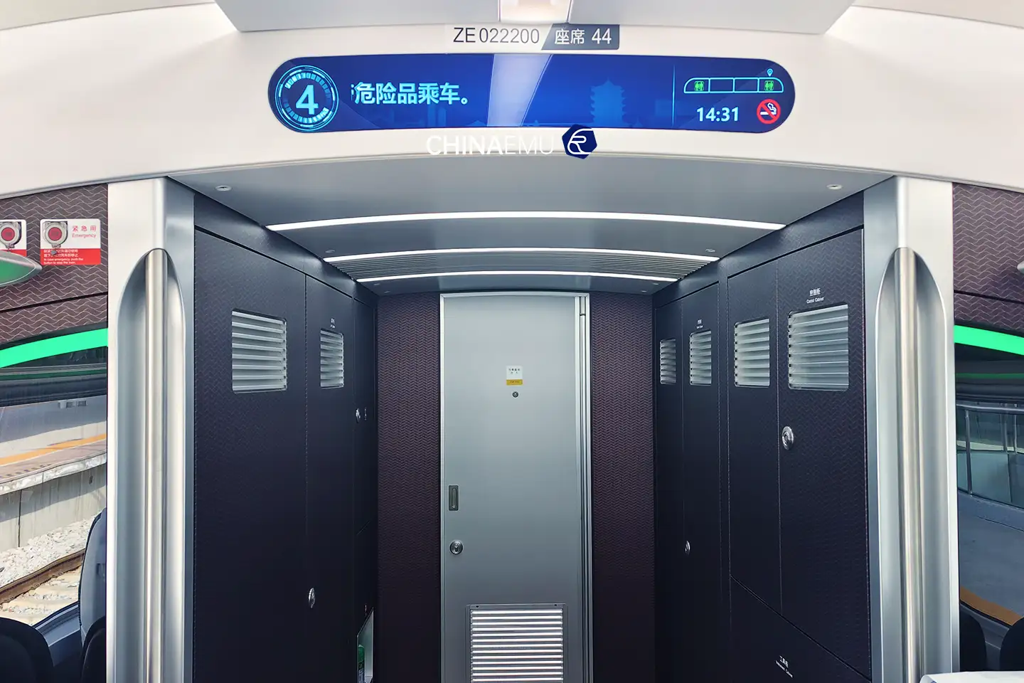 列车采用SWM-200C1/SWT-200C1型转向架,动力学裕量充足,安全可靠,采用全新旅客界面,运行平稳舒适,配备智能照明系统,可自动调节客室色温和亮度,还优化了乘客交互系统。绿色低碳,全新头型和轻量化车体结构设计,可降低重量,降低能耗,大量采用可重复利用材料,绿色低碳。更智能的控制系统及辅助驾驶系统加持,安全检测更到位,列车运行更平顺,还有效减少车载设备数量,提升载客量和乘坐体验。