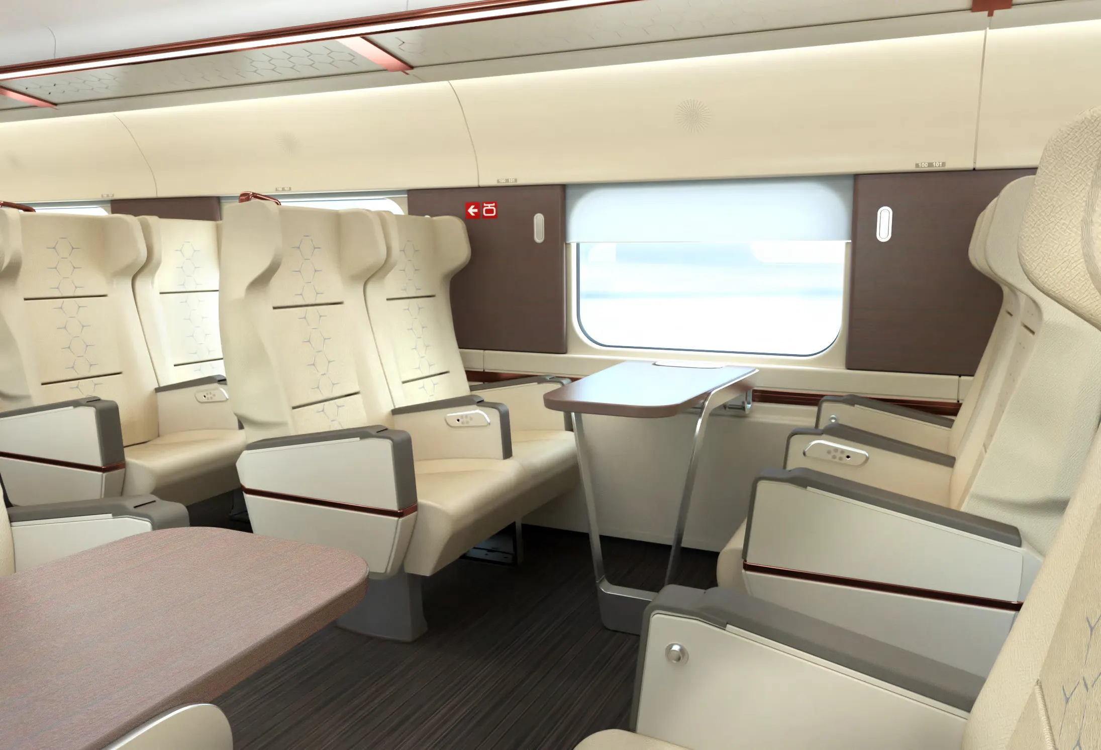 2018年06月株洲厂发布时速250公里动力分散型双层动车组,是我国首款高速双层动车组。列车采用8编组(4M4T),编组形式为-Tc+M+T+M+M+T+M+Tc-,同时可实现4/6/8节灵活编组,具有运量大、速度快的技术优势,适应于高密度和固定车次以及公交化运行的行车组织方式,座椅布局采用3+2形式,设有无障碍卫生间及停放轮椅的空间,8编组AW1定员820人,AW3定员1708人。全车大量使用模块化、系统化的设计,采用了轻量化结构,转向架针对高重心车辆优化,整车采用轻量化材料,相比单层动车组人均能耗节约20.6%。该车以欧洲TSI标准要求为目标,为后续DEMU2动车组的研发奠定基础。