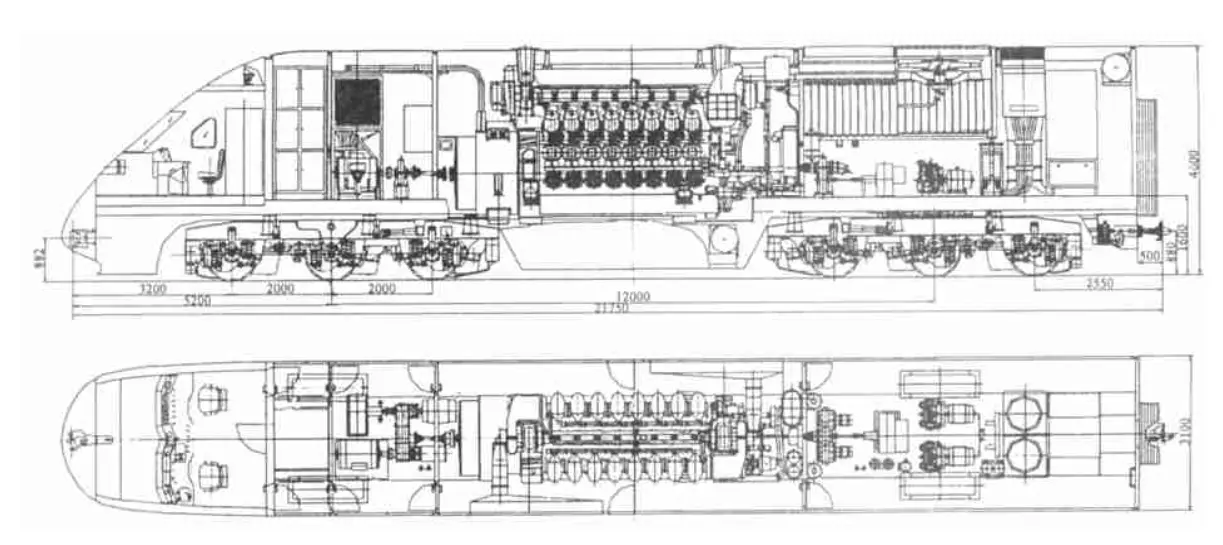 机车柴油机型号为16V240ZJE,柴油机功率3310 kw。机车标称功率2740 kw,向列车供电时为2540 kw。拖车采用SW-160转向架,制动型式为104阀+电空制动,供电型式为DC600V(动车集中供电)。