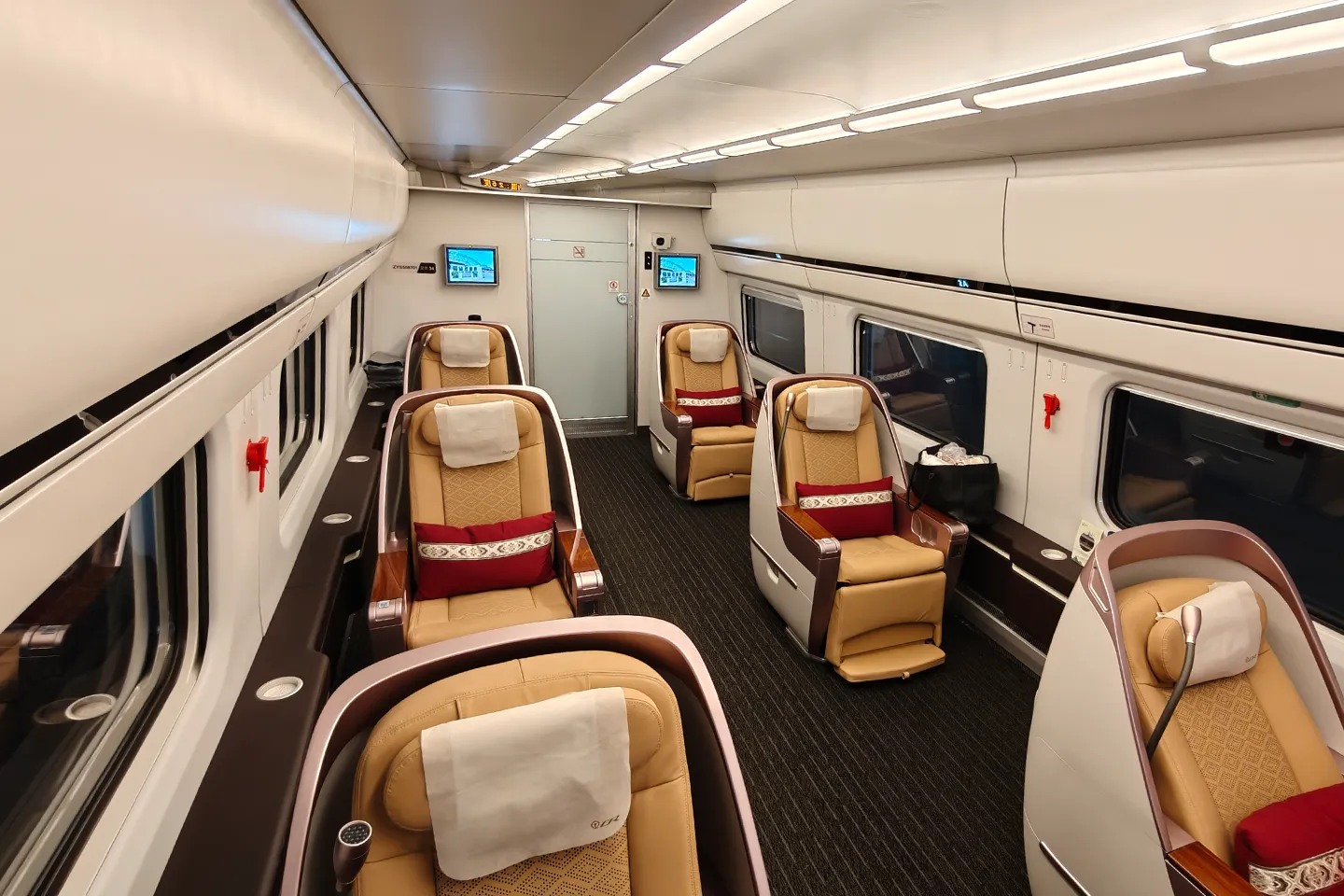 列车设有一等座车(ZY)、二等座车(ZE)、一等包座/二等座车(ZYE)和带酒吧的二等座车/餐车(ZEC)。其中一等座采用2+2方式布置,二等座为2+3布置。